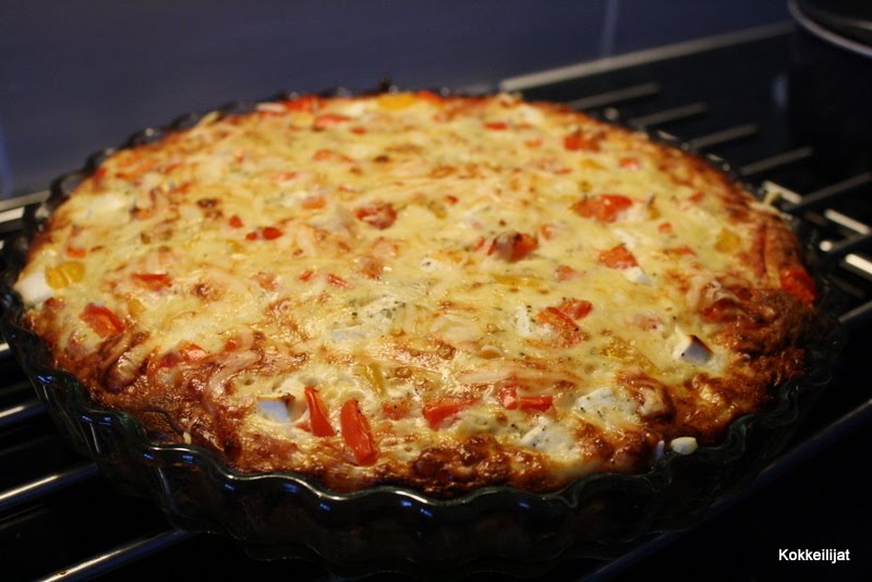 Nyt löytyi uusi suosikki suolaiseksi piirakkapohjaksi! Tämä on helppo tehdä, eikä ole liian tuhti, mutta on silti makoisa. Erilaisia variaatioita täytyykin kokkeilla pian lisää. Tässäpä tämänkertainen kokoonpano.