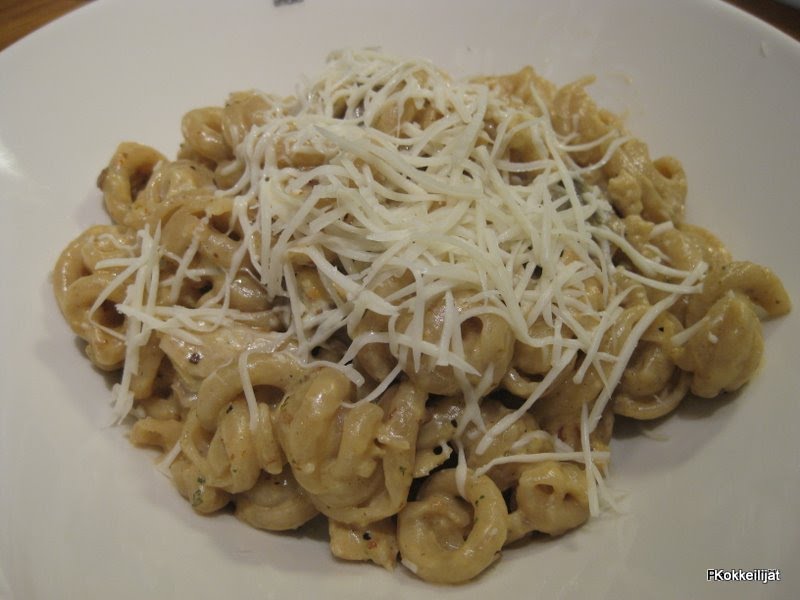 Kanapastaa, johon ei näemmä tullut sitten mitään vihannesta. Valkosipulia on tietenkin aina reilusti!